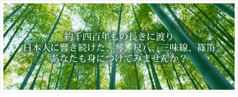 約1400年もの長きに渡り日本に存在し続けている代表的な和楽器が「琴(こと)」「三味線(しゃみせん)」そして「尺八(しゃくはち)」です。かつては琴が一面置いてある、または尺八が飾ってある、といった家庭も多く見られたようですが、近頃は触れる機会や生演奏を耳にする機会も少ないようです。